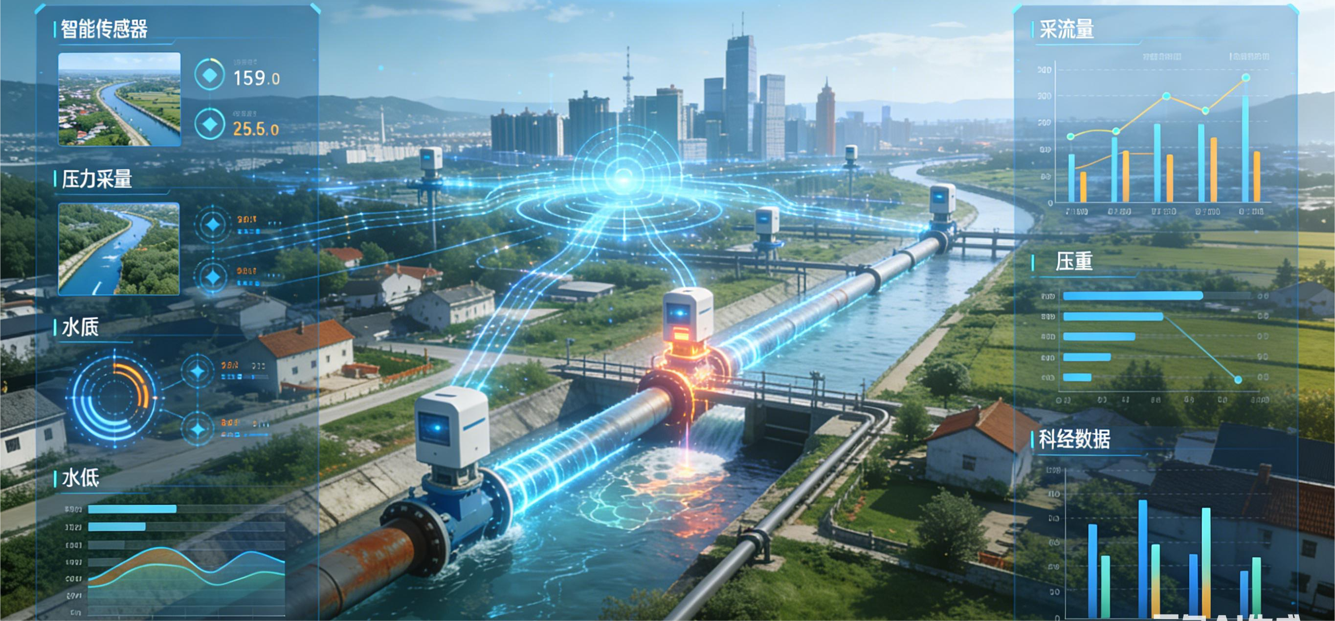 神經(jīng)系統(tǒng):遍布城鄉(xiāng)的智能傳感器實(shí)時(shí)采集流量、壓力、水質(zhì)、水位等數(shù)據(jù)